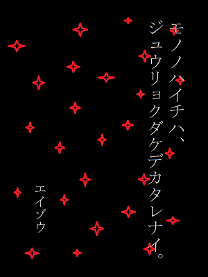 エイゾウ(裔造)の随筆『モノノハイチハ、ジュウリョクダケデカタレナイ。』です。